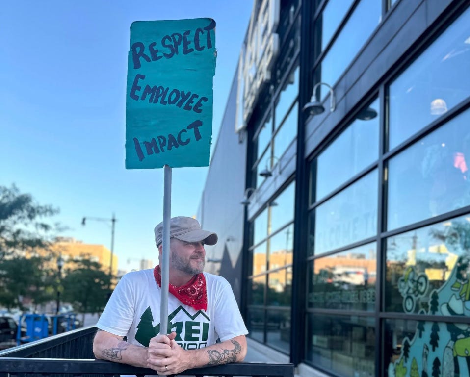REI. Nice company that loves nature. A co-op, even! REI workers have unionized at nearly a dozen stores. Has the nice progressive company, REI, negotiated a fair contract with these employees? After three years? No. Not at all. The company’s intransigence has been so great that workers had to go to the trouble of nominating their own slate of board members—a slate which the company ignored—and then subsequently going to the trouble of organizing an entire (successful) campaign to get people to vote against the company’s own board members. It is certainly impressive and inspiring that the unionized workers won this campaign against the company board members. Consider, however, that all of this nationwide effort and strife is only necessary because REI, the nice progressive company, continues to choose to refuse to simply negotiate a fair contract with its unionized employees. All of this organizing, all of this coordination, all of this work, is being done just to try to pressure the company to fulfill its basic legal and moral obligations: to treat its own employees as human beings who are deserving of the most rudimentary form of respect and fair treatment, rather than as enemies to be oppressed at every turn.