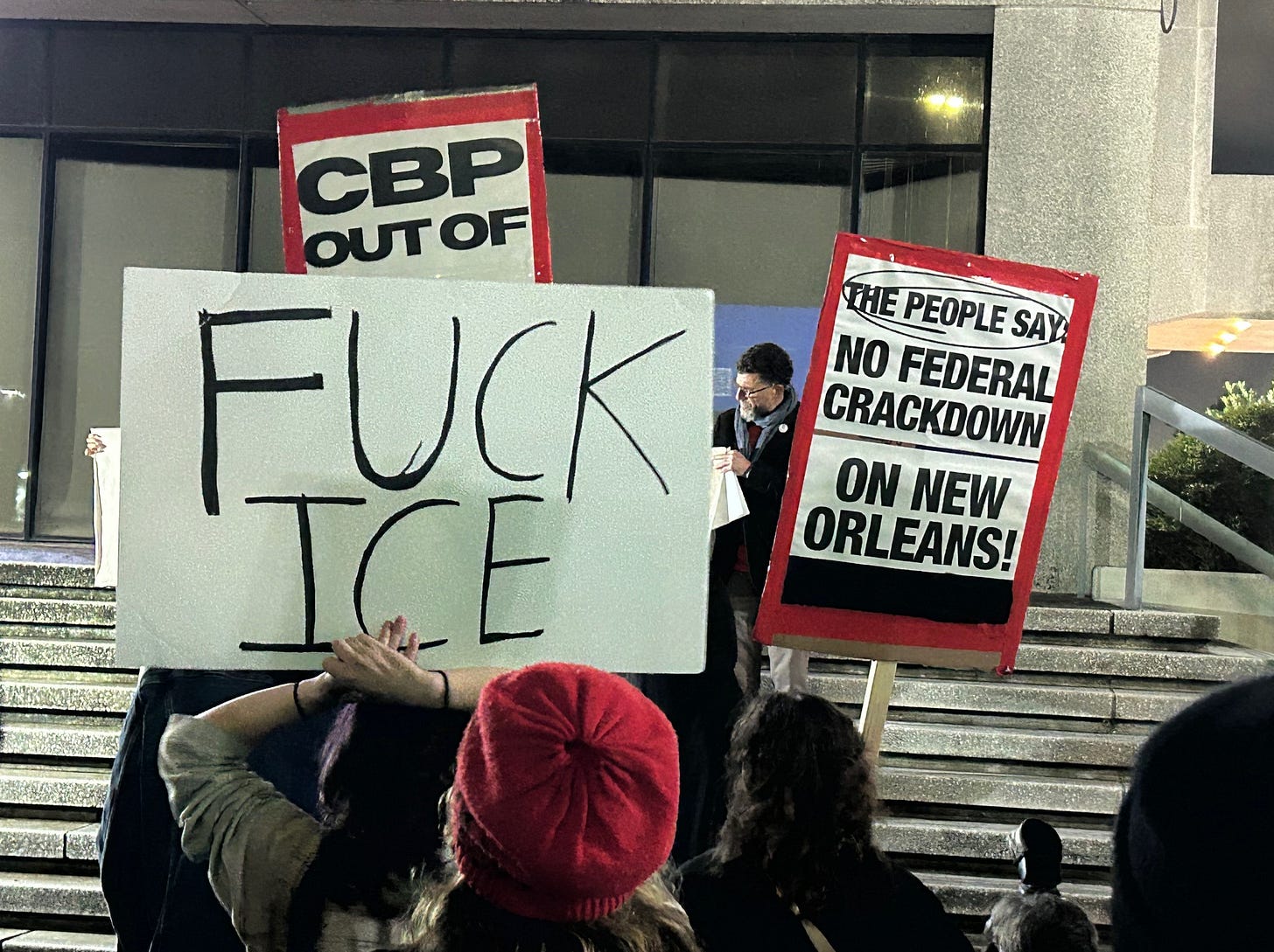 The people of New Orleans are also registering their pissed-off-ness by holding protests against the immigration action on a near-daily basis. I went to one on Saturday night, on the steps of Hale Boggs federal courthouse on Poydras Street. There were many “CBP OUT OF NEW ORLEANS!” signs and fliers for a teach-in about general strikes and constant honks of support from passing cars. A billboard for Zatarains loomed picturesquely across the street. A couple of right wing Youtube trolls also attended, prancing around in front of speakers and shouting pro-deportation slogans and aggressively shoving cameras in unwilling people’s faces and generally acting like dickheads. One of these people, a weak-chinned MAGA darling named Nick Sortor, harassed a woman so insistently that a scuffle broke out. In any other setting, he would have gotten his ass kicked, but the security volunteers went out of their way not to do so, just trying to steer him away from people over and over as he cried about being assaulted. All of this while people who were immigrants and who faced very real risks of life-changing government oppression were giving brave and heartfelt speeches just steps away. It really drove home how rude Nazis are. Their own repulsive, racist glee indicts them more effectively than any outside critics ever could.