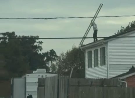 The most memorable video from the New Orleans immigration sweeps is one taken last week in a residential neighborhood in Kenner, that instantly became famous. It shows federal agents with rifles surrounding a house where men are repairing a roof. As the cops hop out of their cars and approach, one of the roofers snatches the ladder and yanks it up, setting up an hours-long standoff between the agents on the ground and the men working above, unwilling to come down. The men on the roof reportedly got away in the end.