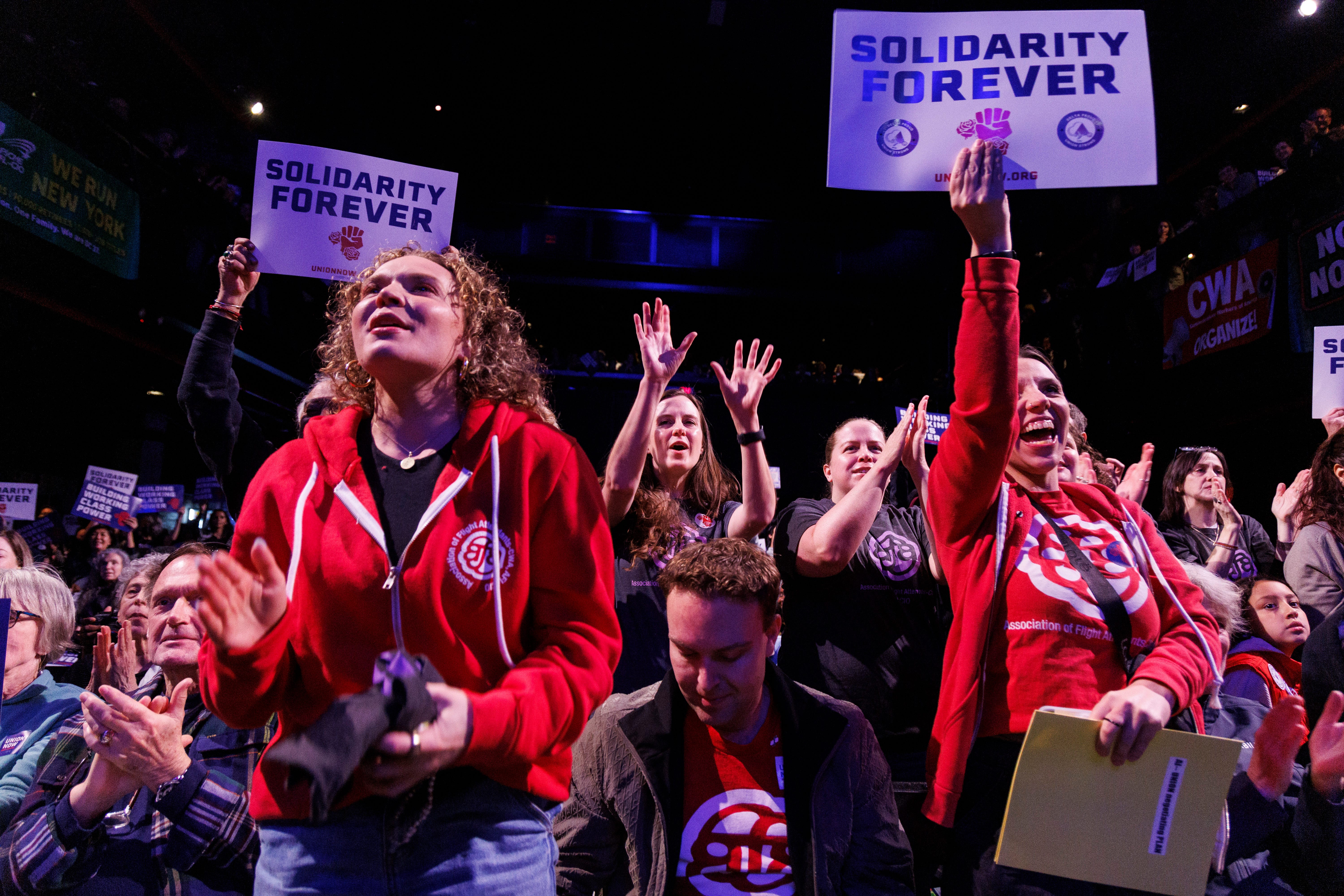 As worker after worker spoke—a video game worker, and a journalist, and a bank teller, and a museum worker—the question came to me: When do you ever see this, in America? When do you see all of these very different types of working people coming together, and sharing their stories, and clapping and cheering and lifting one another up? Nowhere. There is nowhere that a scene like this ever plays out, except at a union rally.